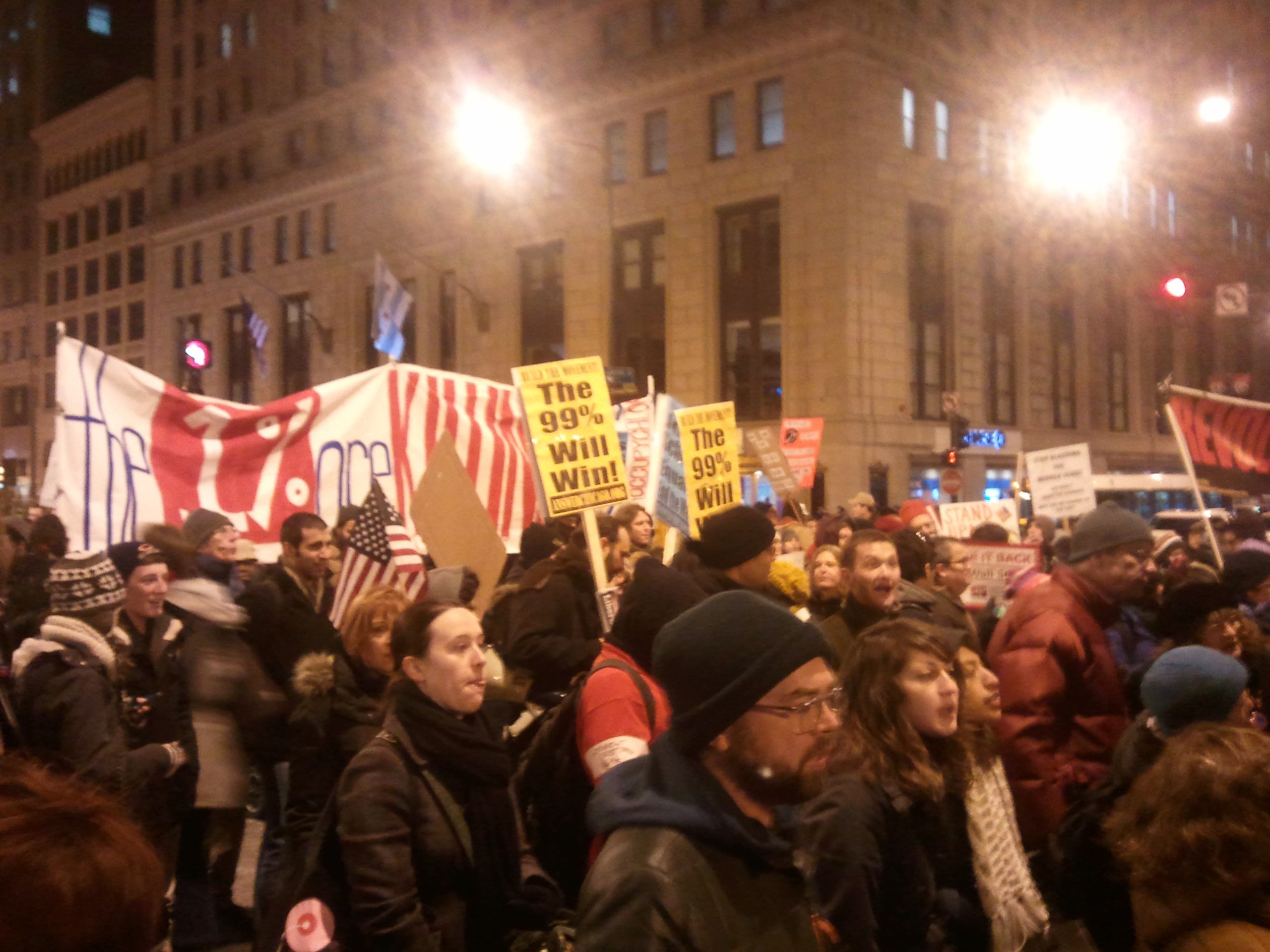 Yesterday, my friend Hannah and I joined in the Occupy Chicago march down Michigan Ave. after we left the office. We took over the northbound lane from Congress up to Randolph and then Randolph to the Thompson Center. (We were headed for Daley Plaza, but the Christkindlmarket was being set up.)