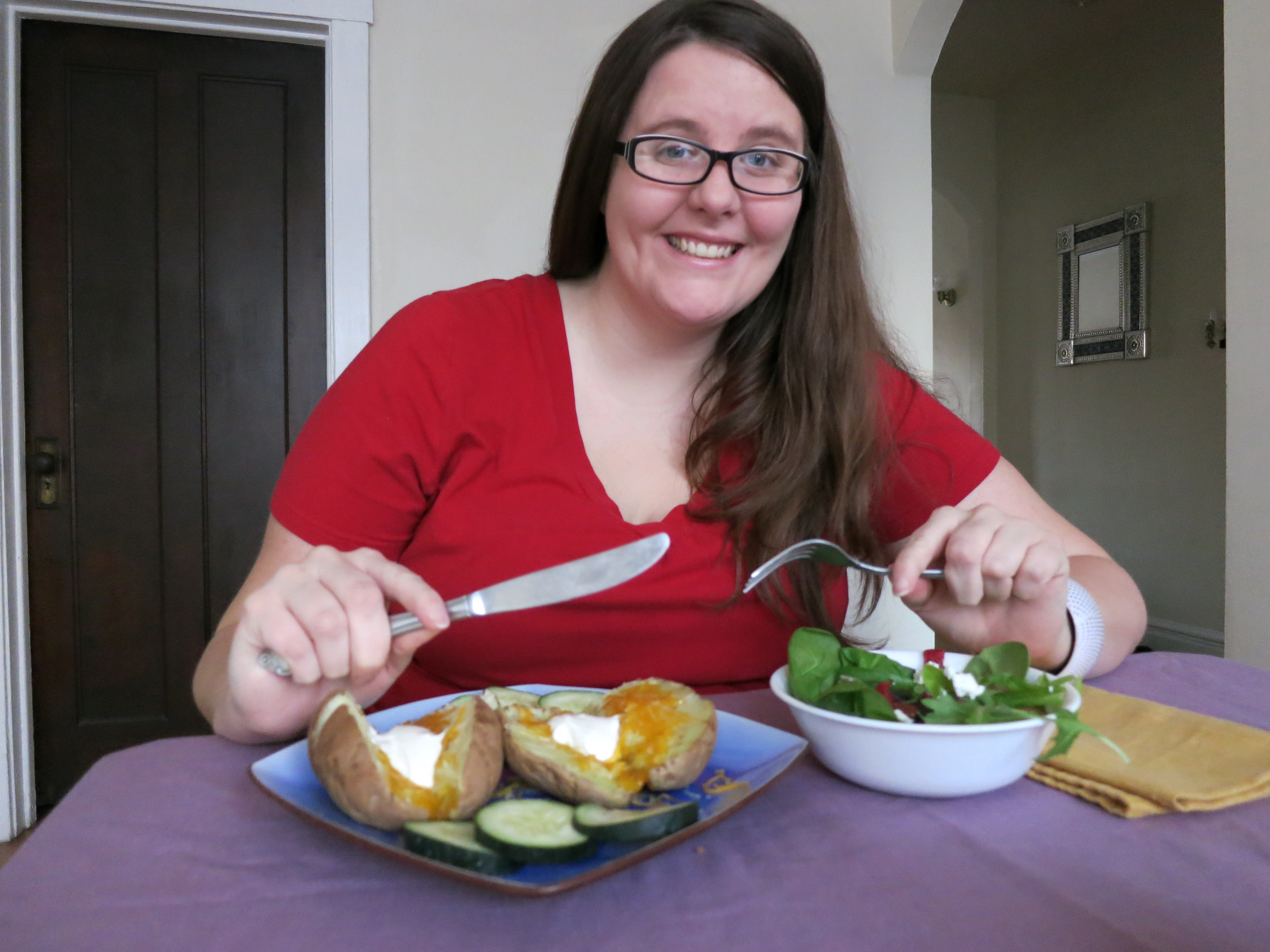 It’s exactly what I do for dinner, except then I throw out the greens part of the salad, leaving just cheese, fruit, butter, and potato.
