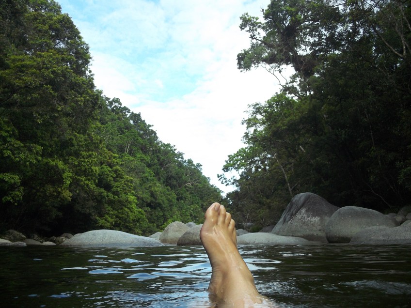 floating down a river Published December 31, 2012 at 4000 × 3000 in Delving into the Daintree Rainforest, or Licking the Ant’s Butt This, as they say, is the life