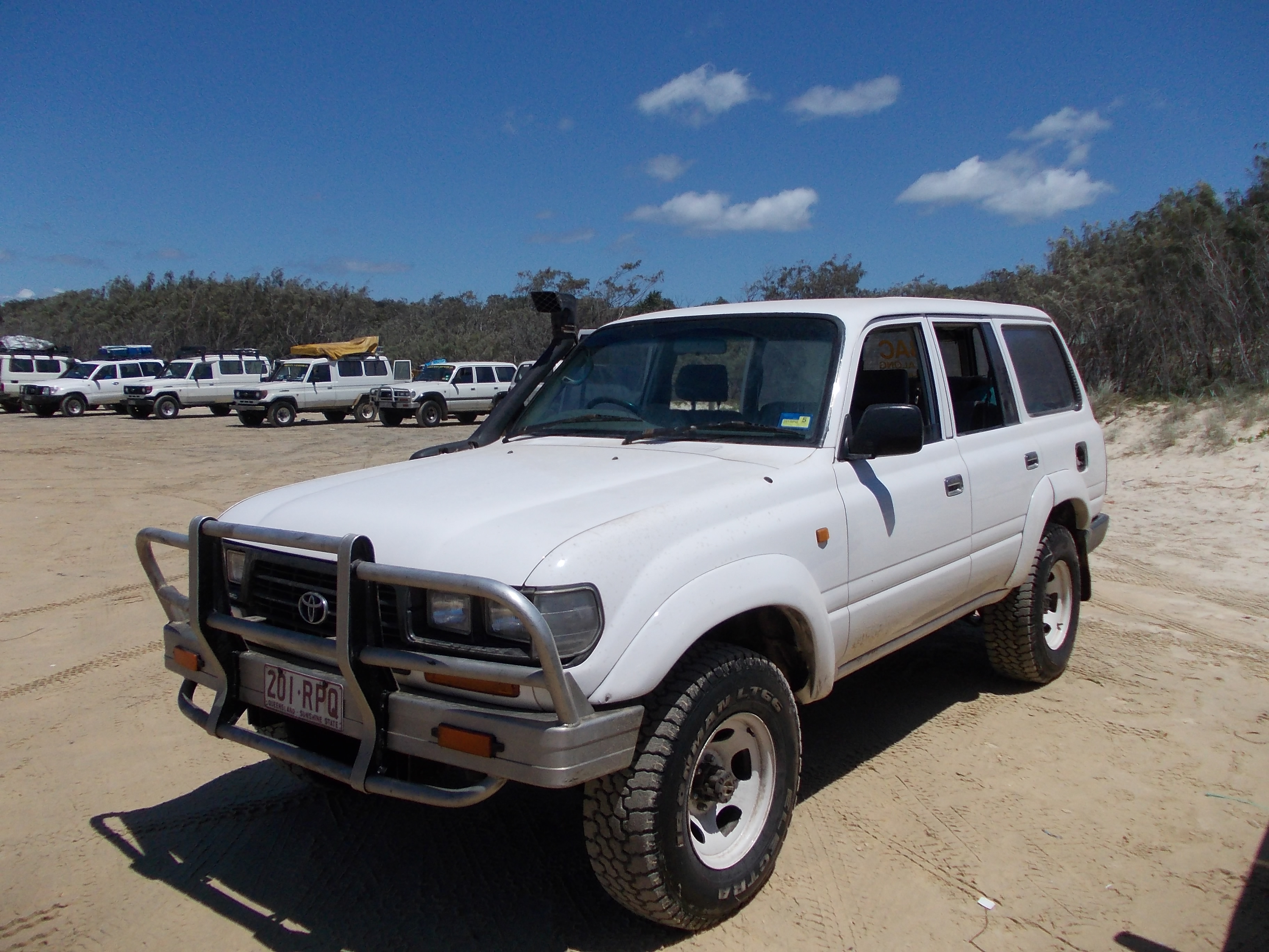 Of course, I was a little run down after my No Good, Very Bad Day, and really I should’ve just spent a week sleeping, but I was sure new sights would be the perfect cure. So I watched the safety video with the rest of my tour group, packed up a small bag with a few things, and waited outside the hostel for our 8am departure. We were split into four groups of 8 and assigned to our 4WDs. My group had a couple young German guys, a British/Scottish couple, a Swiss guy and German guy traveling together, a British woman, and me. Pretty representative of the national makeup of tourists I met in Australia, actually.