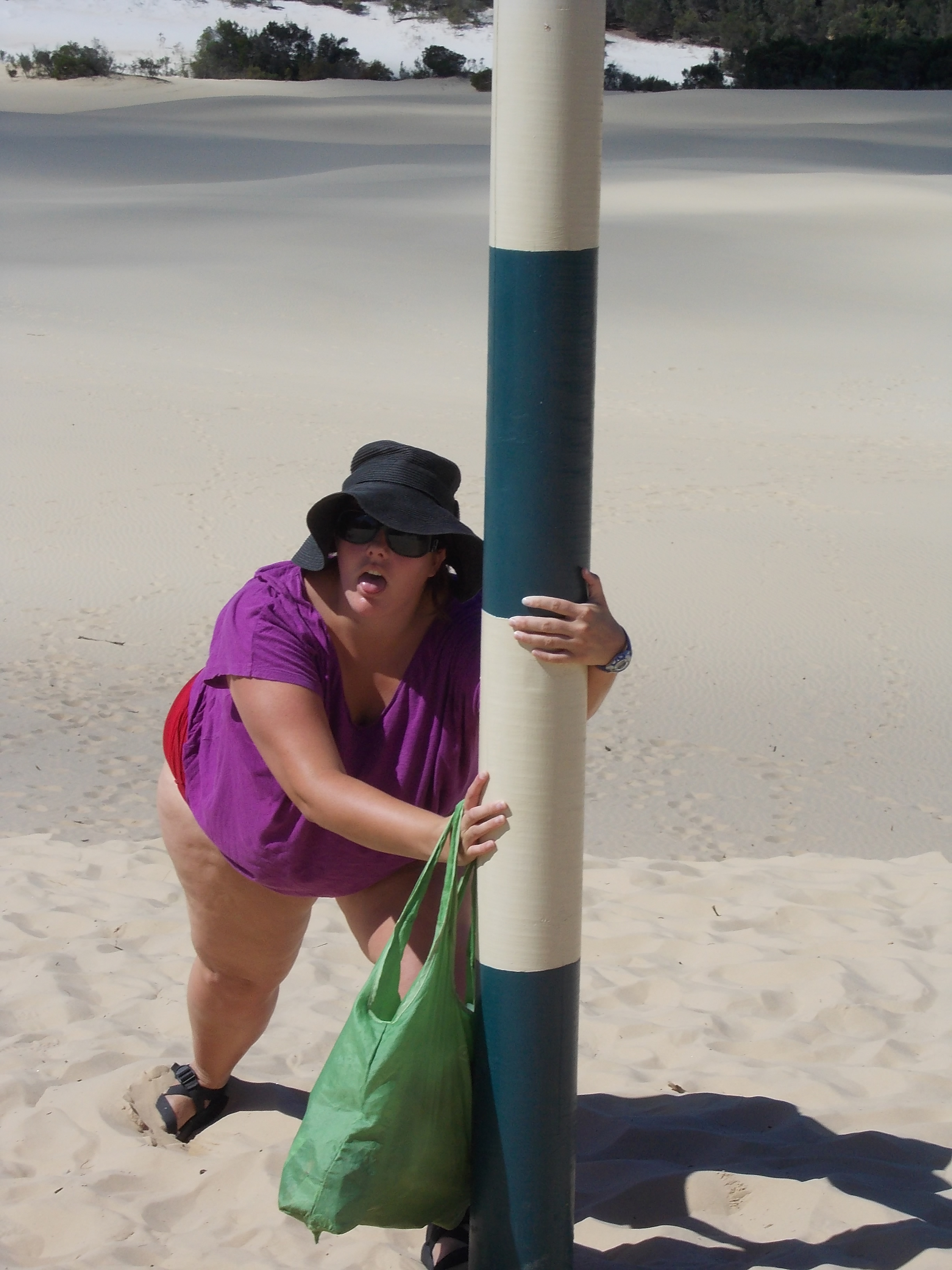 The water was lovely and cold, and fish cruised past me as a I swam half the length of the lake. I dried out in minutes—it really was very hot—and chatted with some of the girls in my group as we all reapplied sunscreen. The walk back was one of the hotter walks in my life. This is me at the top of the looong dune climb: