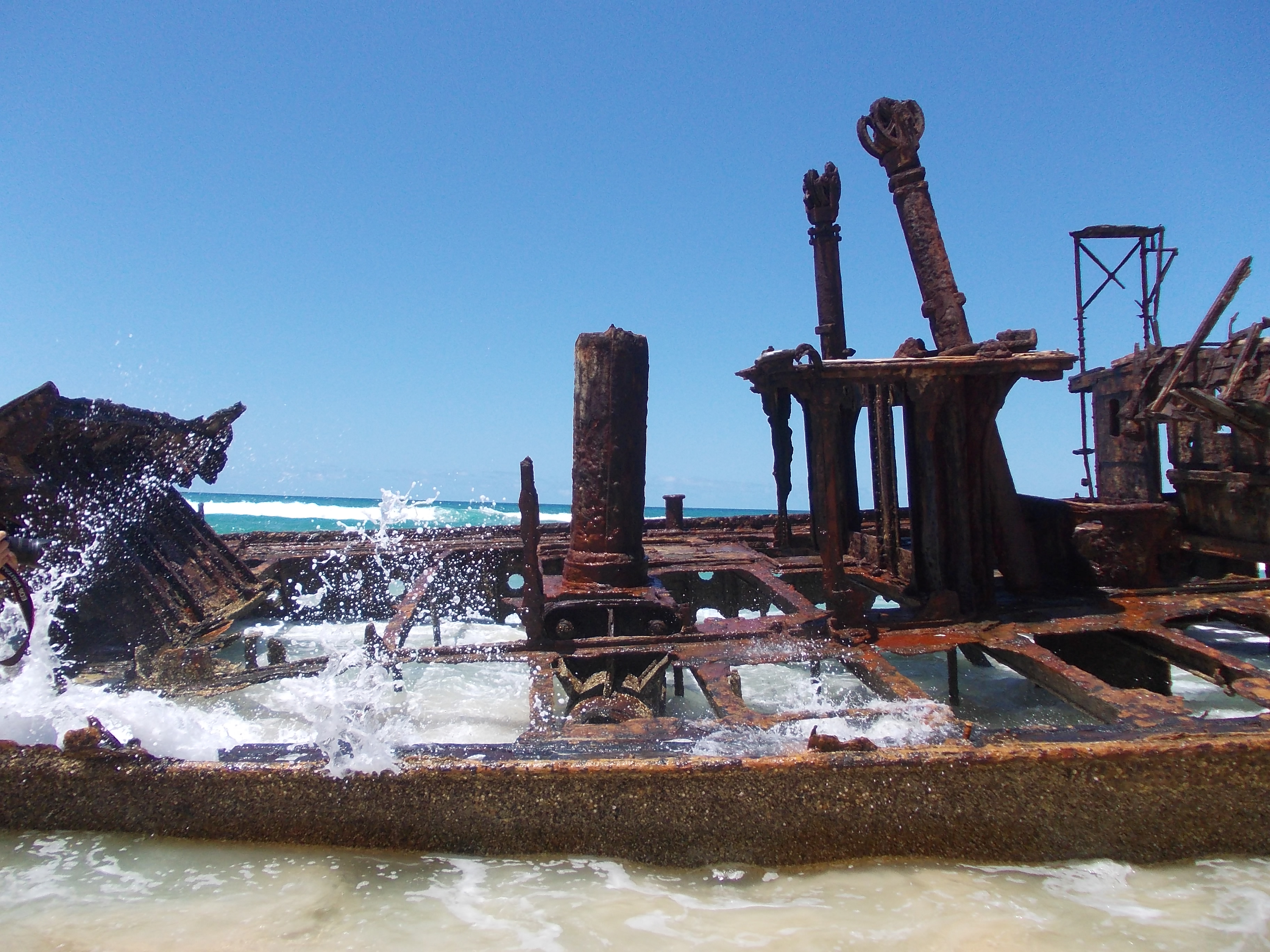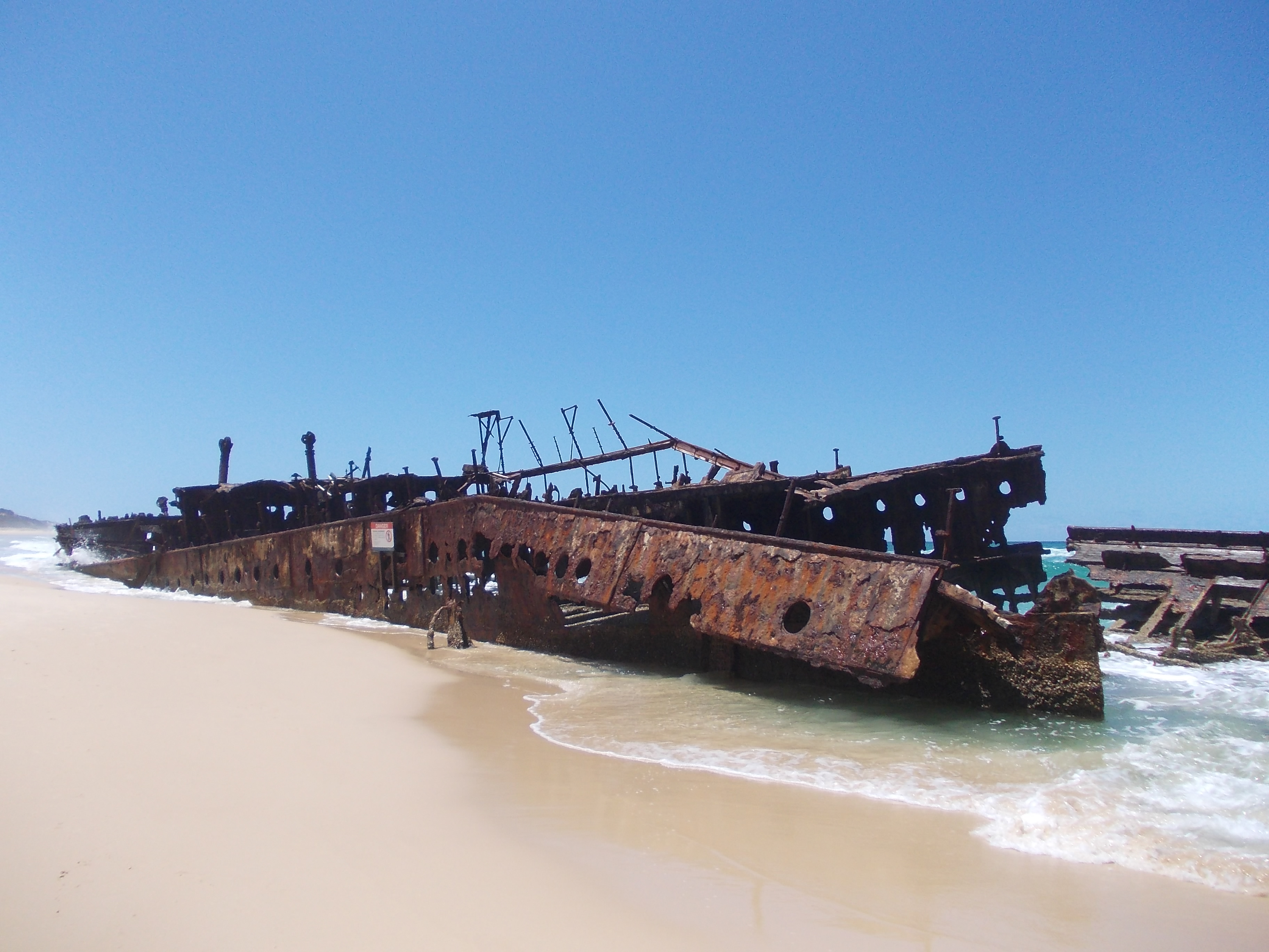 We stopped at the shipwreck of the Maheno, which was a swank cruise ship that got caught in a storm on its way down the Australian coast in 1935 and washed up on the shore here. It was a little eerie, this giant, rusted wreck with nothing but blue water and golden sand stretching out for miles on either side.