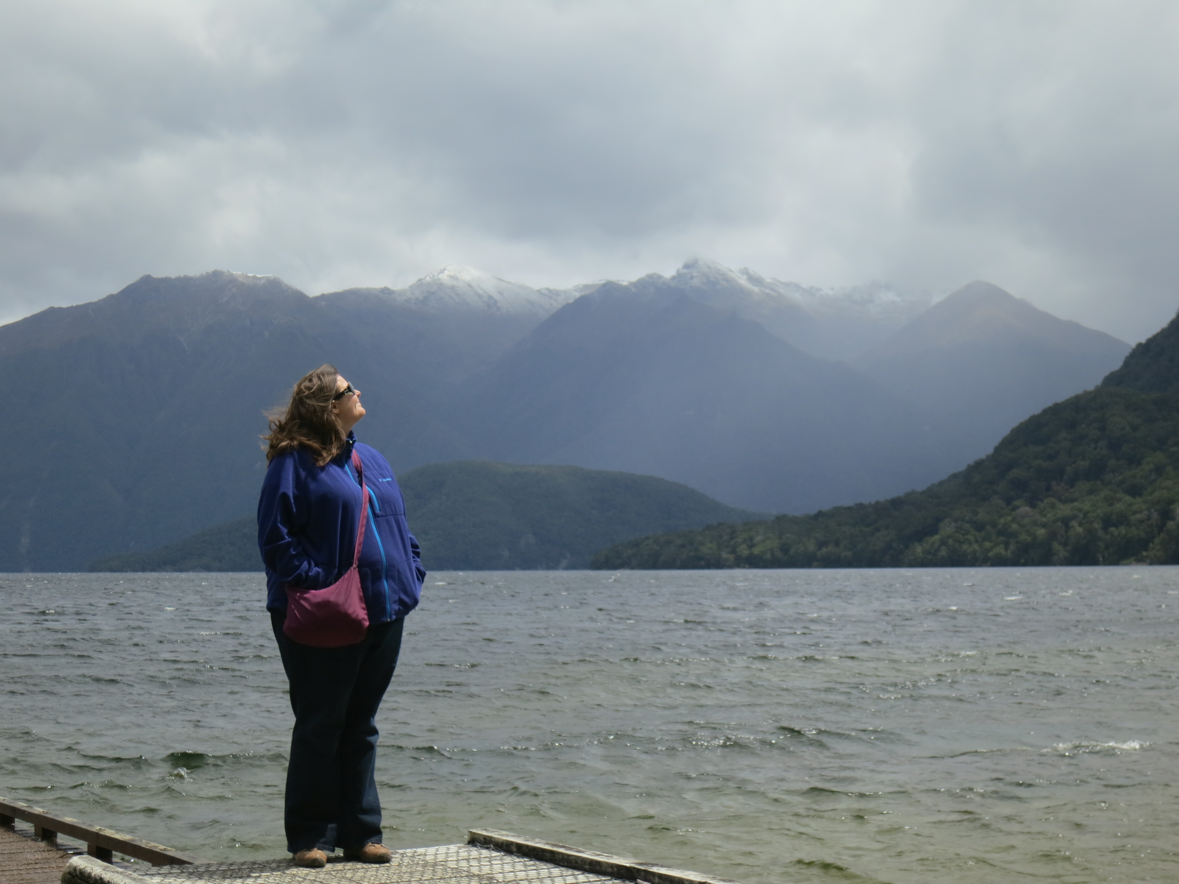 Leonie, my host, had time off on my second day in town, so she took me around to see the sights. We went to Lake Hauroko, which is the deepest lake in New Zealand (462 meters at the deepest point). Part of the path was flooded when we went, so we just did a short walk along a path lined with ferns in various states of unfurling.