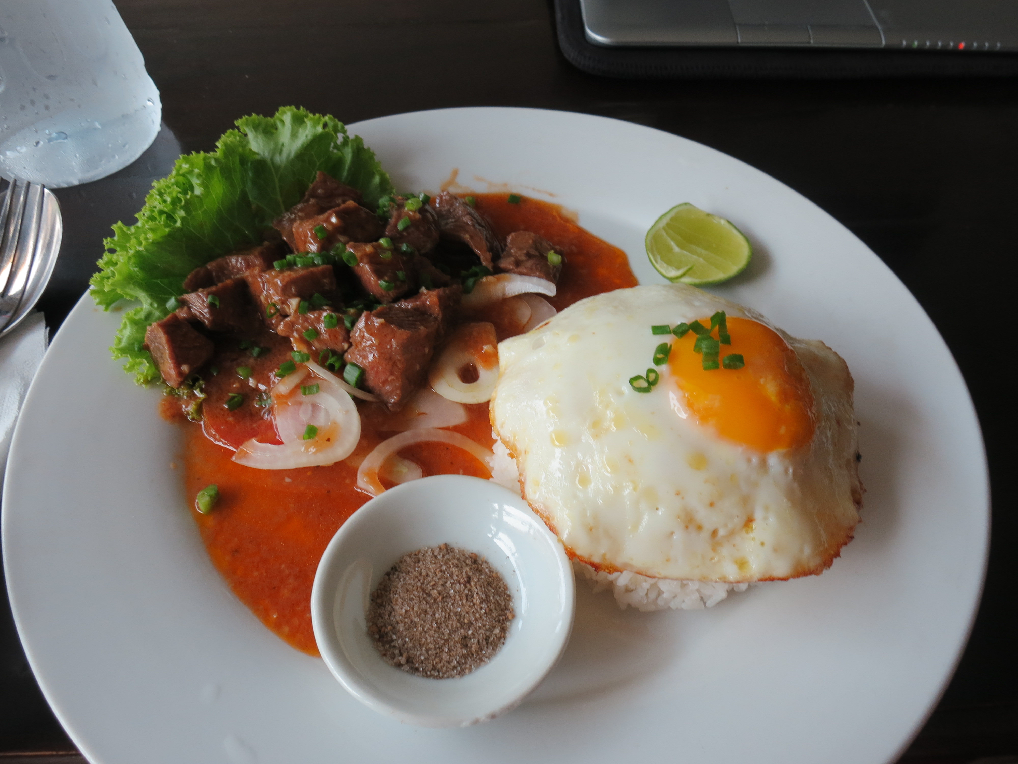 So when I wasn’t sightseeing, I was holed up behind the hostel walls, lounging in the pool, drinking cocktails with the girls from my dorm room, eating Western and Khmer dishes from the hostel restaurant, sending my laundry away to be done, and waiting for my Vietnam visa to be processed. I hung out with a Spanish couple, who felt like old friends by this point–we’d met on the slow boat to Laos, seen sights together in Luang Prabang, and had dinner in Siem Reap.