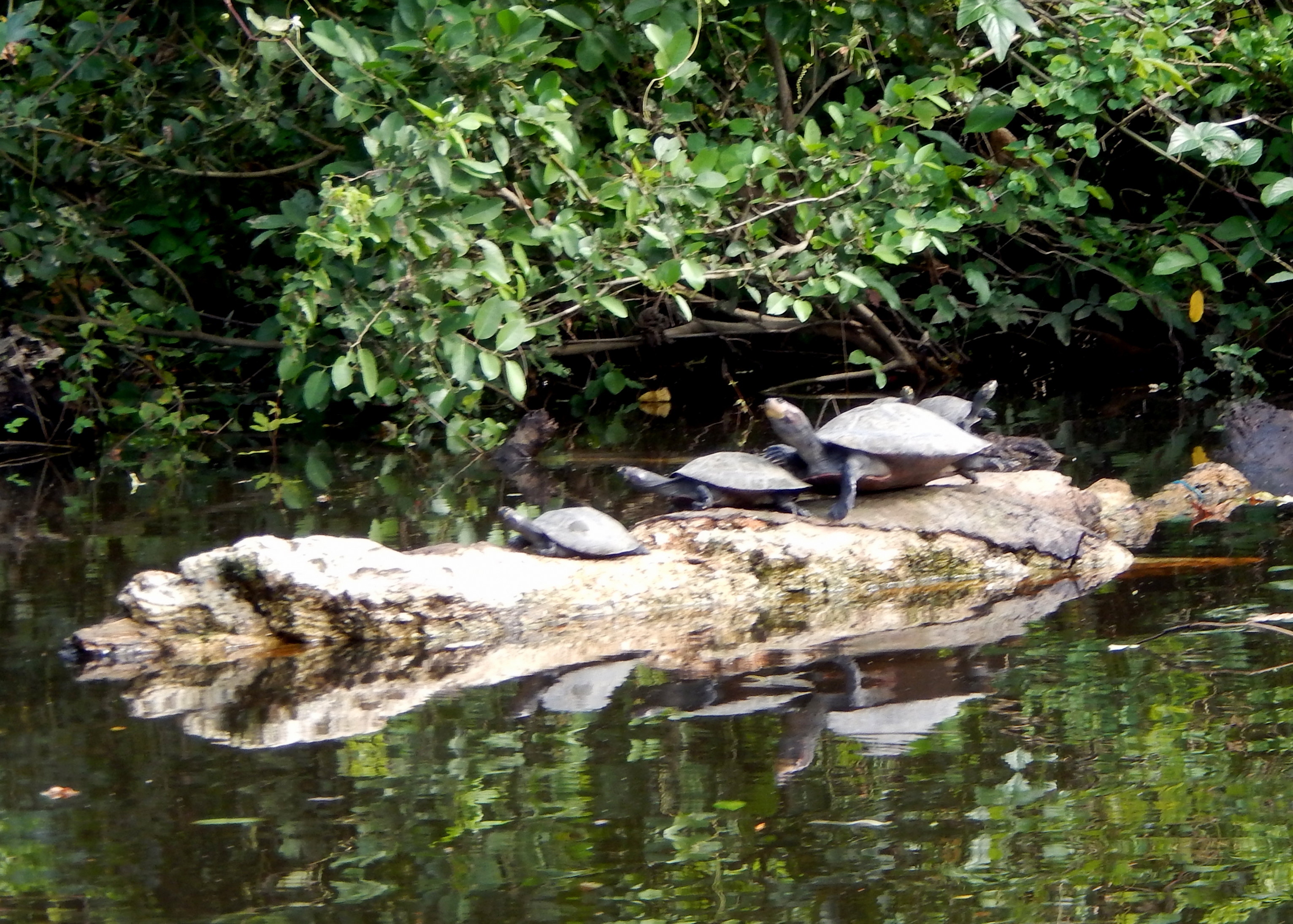 Sunbathing turtles–every single one moved surprisingly fast for a turtle, diving into the water when they heard our boat approaching