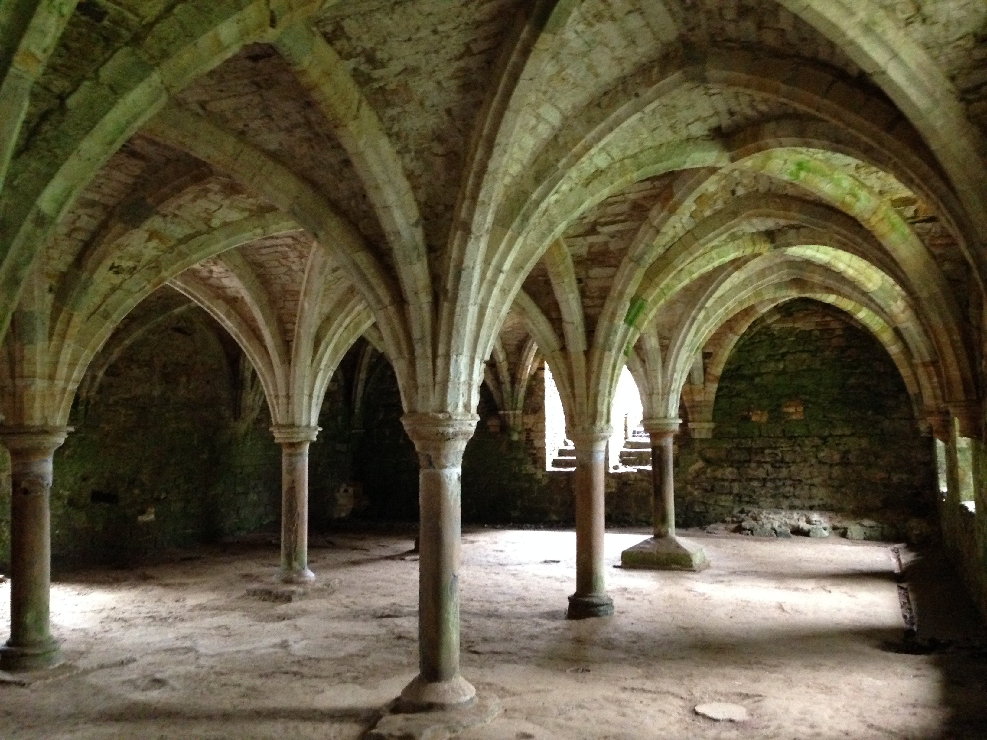 We squelched around the battlefield and did a little fake fighting (I was on the losing side–told you she’s a fencer), and then we walked around the abbey. Built as it was on a hillside, the abbey had some odd heights inside it, where the farther up the hill you went, the lower down the ceilings were. I would have thought architects would have compensated for that, but no matter, it just made the ruins a little more mysterious.