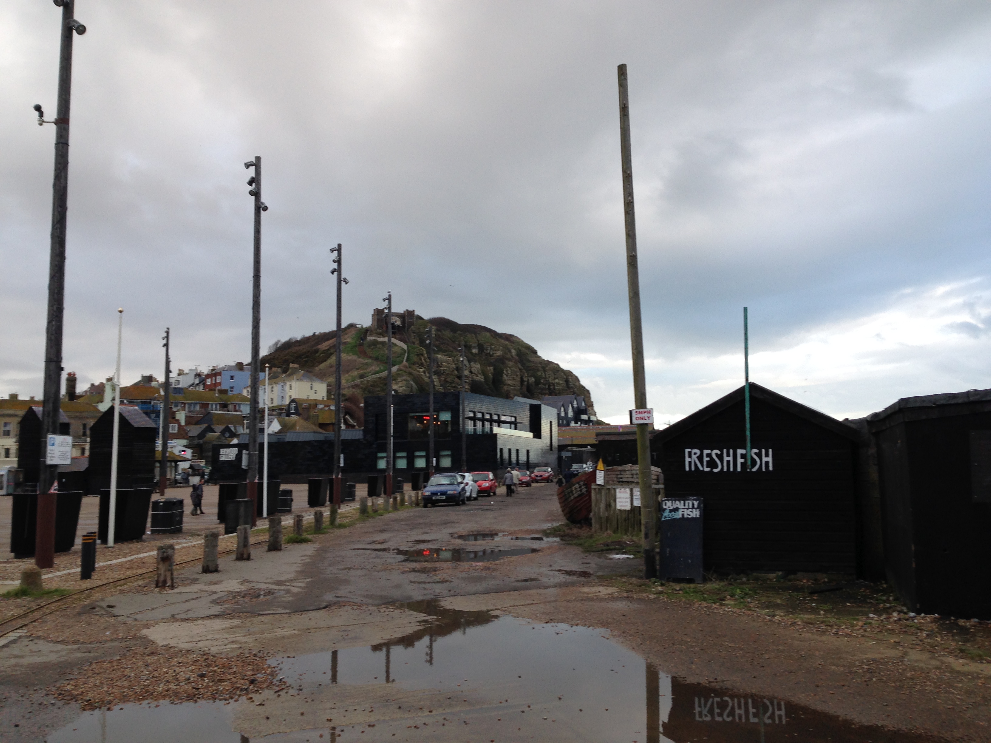 After we strode victoriously out of Battle, we took the train down to Hastings, which was a larger town than I’d expected. I walked to the ocean’s edge to put my fingers in the water, and managed to soak my shoes through, making that the second time that day they’d been soaked through.