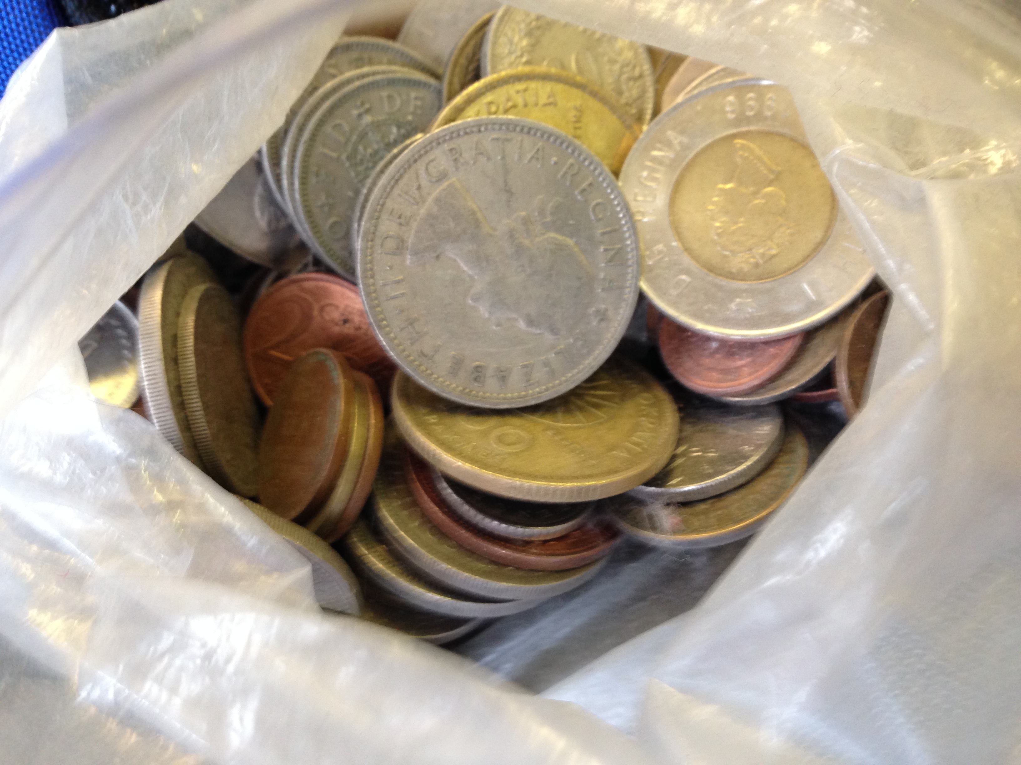 I found a baggie of British coins in my things when I was packing at my parents’ house a week ago, and I put the whole thing in my backpack, figuring I’d use it all up when I got to England. It made my bag noticeably heavier, but no matter, it’ll all be gone soon, right?