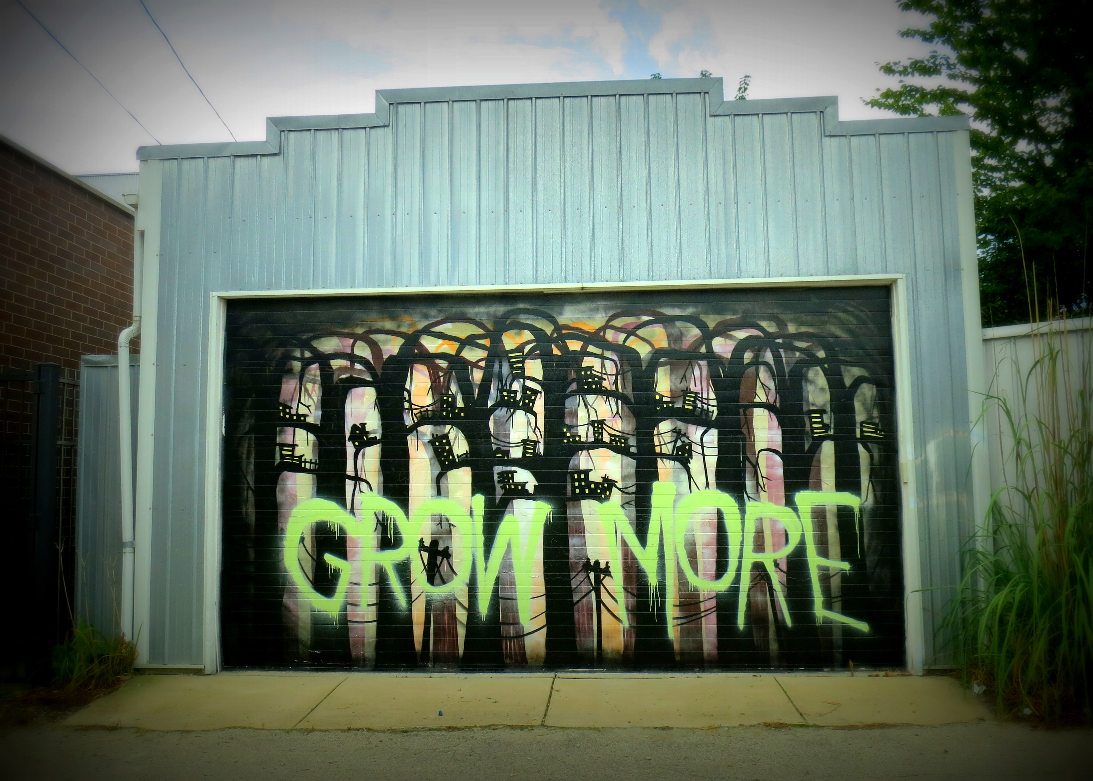 I went to Chicago this weekend, visiting friends and family I hadn’t seen for a year. I had a wonderful time catching up over delicious meals and drinks, especially as the weather gradually warmed up to proper August temperatures. I didn’t have much time on my own, but Thursday afternoon I went back to my old neighborhood, and I finally took some pictures of an art studio I’d seen from the el but never found on the ground before. Here are some shots of the great paintings I found there.