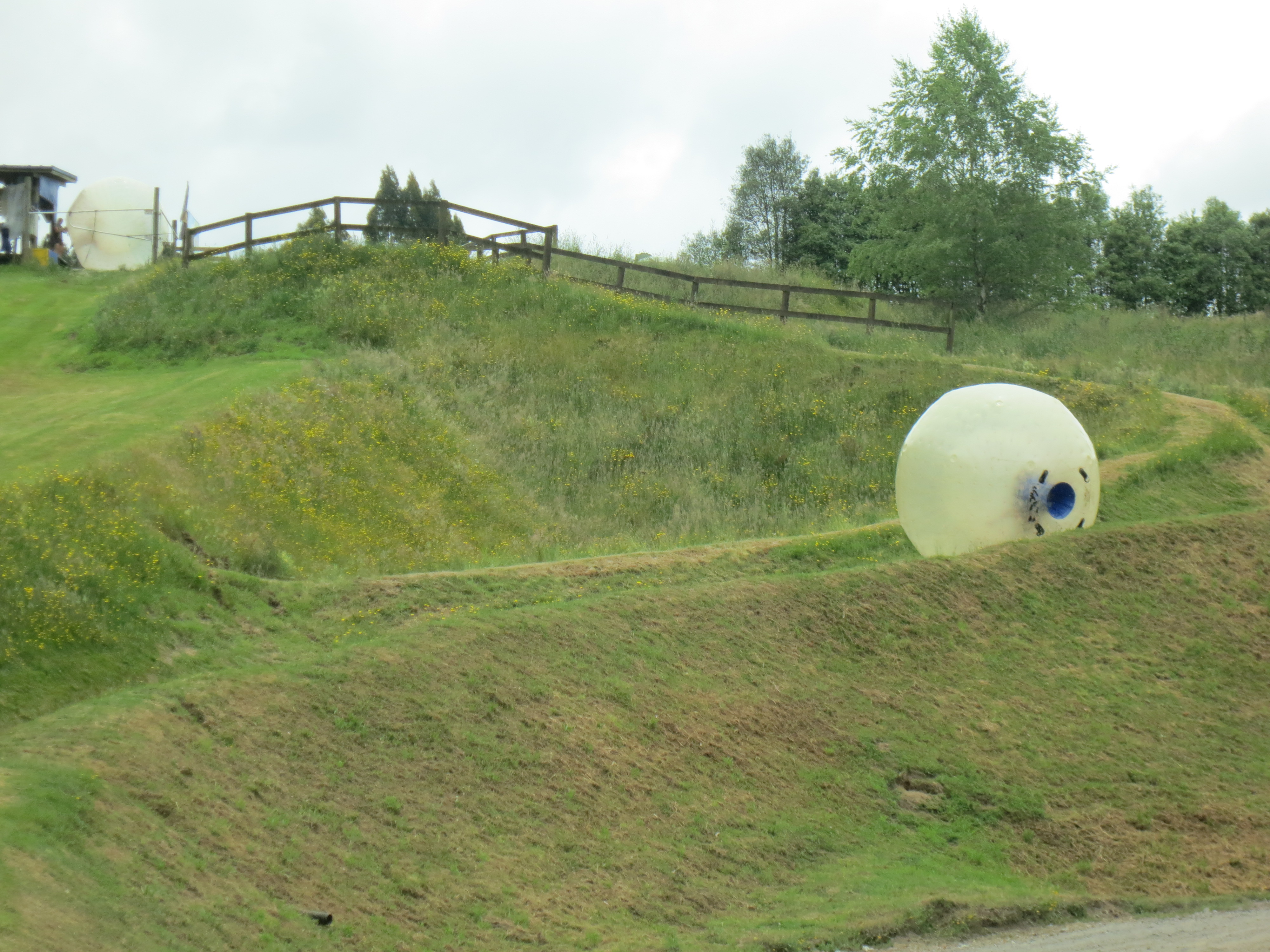 We totally touristed it up that second day in Rotorua. First, Liz went zorbing, which involves climbing into a giant plastic ball and getting pushed down a hill. Variations include a zig-zag path and a ball full of water to splash around in. I thought zorbing sounded like a lot of fun, but since I was walking around with a concussion, I thought maybe I’d better just watch.