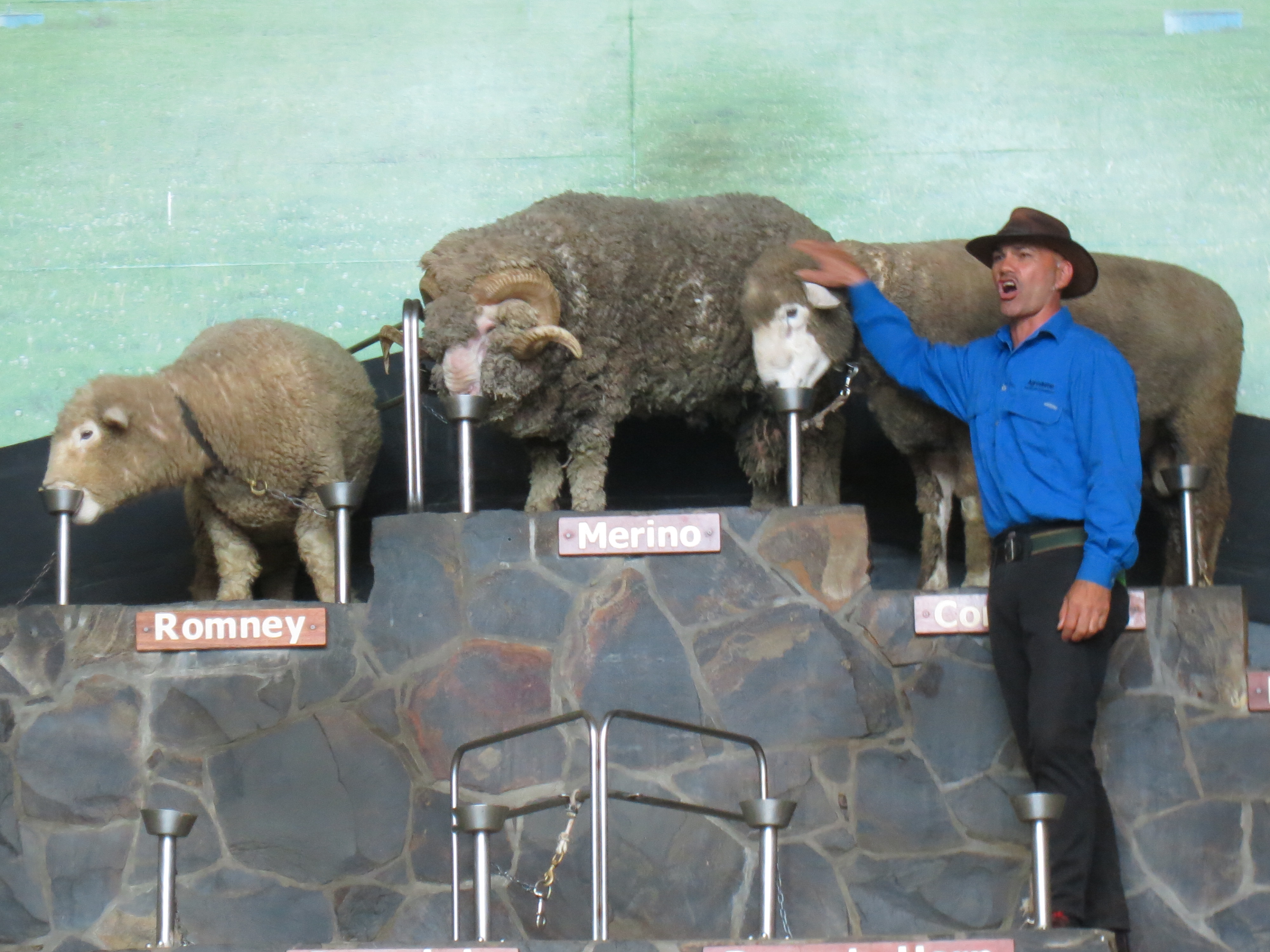 The show featured an absurdly well-toned Kiwi, who led us through the paces at a good clip, with plenty of groan-worthy jokes that we all dutifully chuckled at. His assistant led the sheep up on stage, and hooked their leads to the feed trays so the sheep would stay on display. He brought some kids up on stage and let them feed some lambs from bottles. A sheepdog came out and attempted to herd some geese, although these flapped off the stage and ran around the audience for a bit, and based on the shepherd’s increasingly agitated calls to the dog, this wasn’t part of the show.