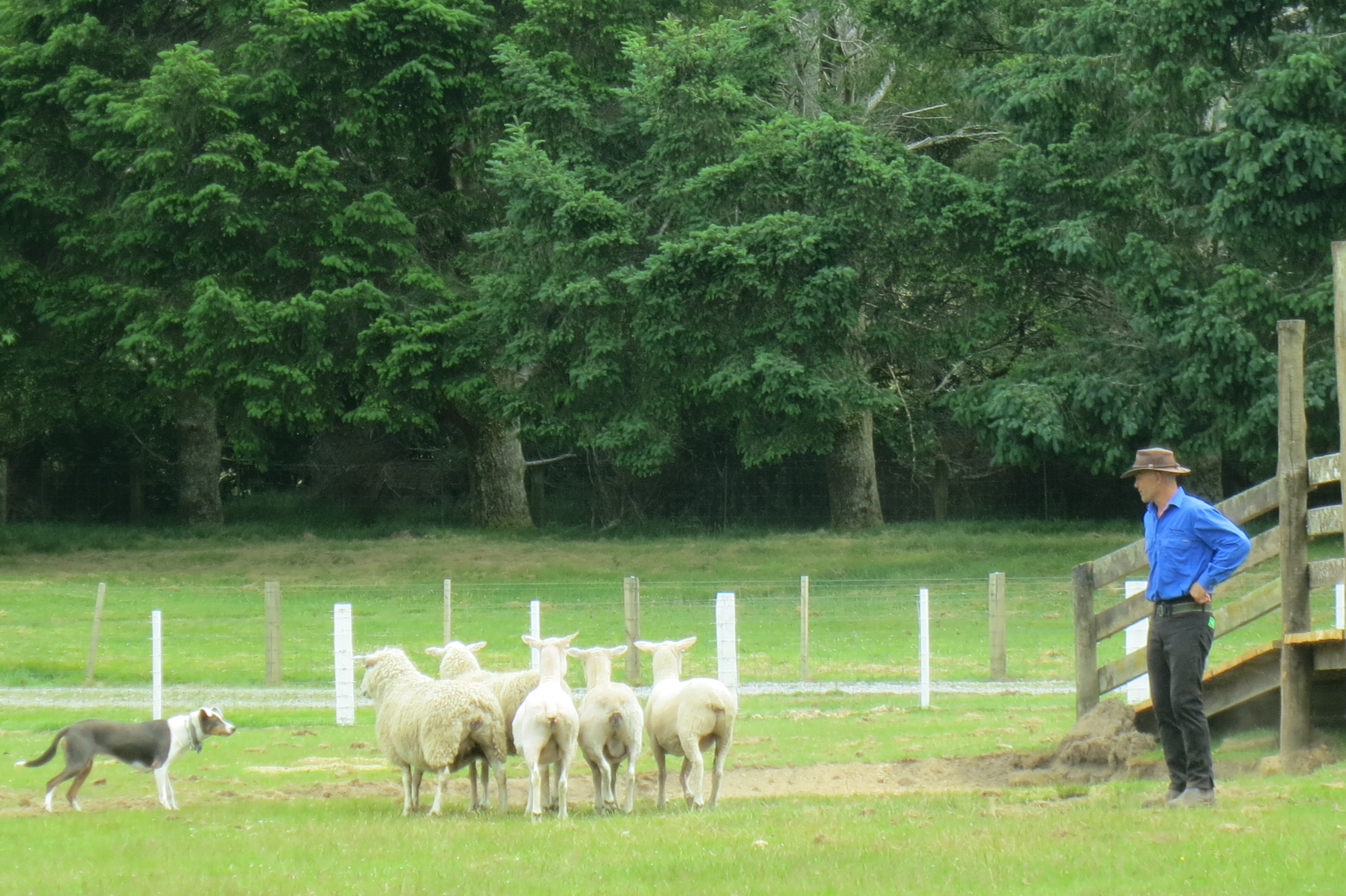 We got a short display of sheepherding outside. The shepherd uses vocal commands with the dog, and the dog makes eye contact and uses body language to move the sheep–no nipping at their heels.