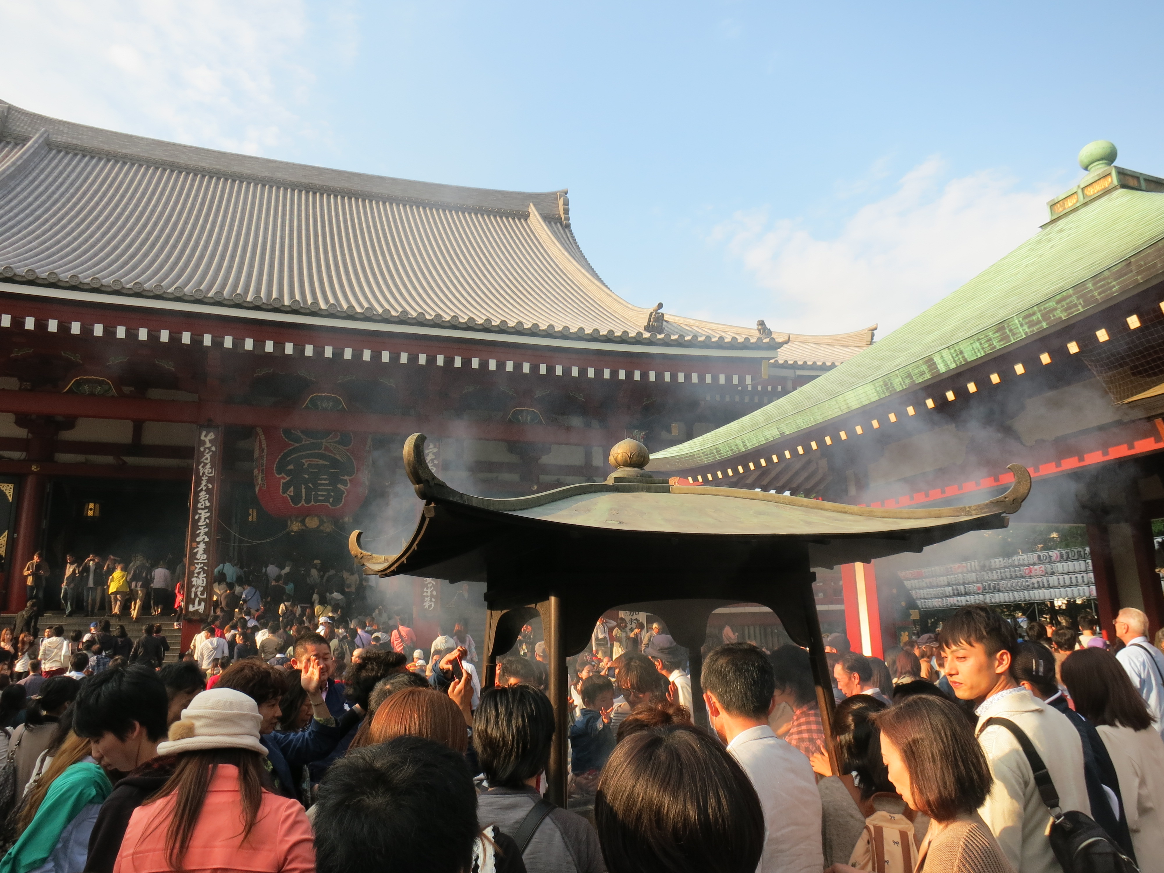 Getting to Kiyomizu Temple was more of a journey than I’d expected. I took a bus, walked up an endless hill, which finally turned into old Edo period buildings, and eventually I reached the shrine. It was a large complex, set around the edge of the hill, so for the first part you stood on the patio and looked across the ravine to a pagoda. (“Jump off the ledge at Kiyomizu” is a Japanese idiom similar to “take the plunge”–if you could jump 13 meters from the pavilion to a spot below, you’d get your wish. Not everyone survived this plunge.)