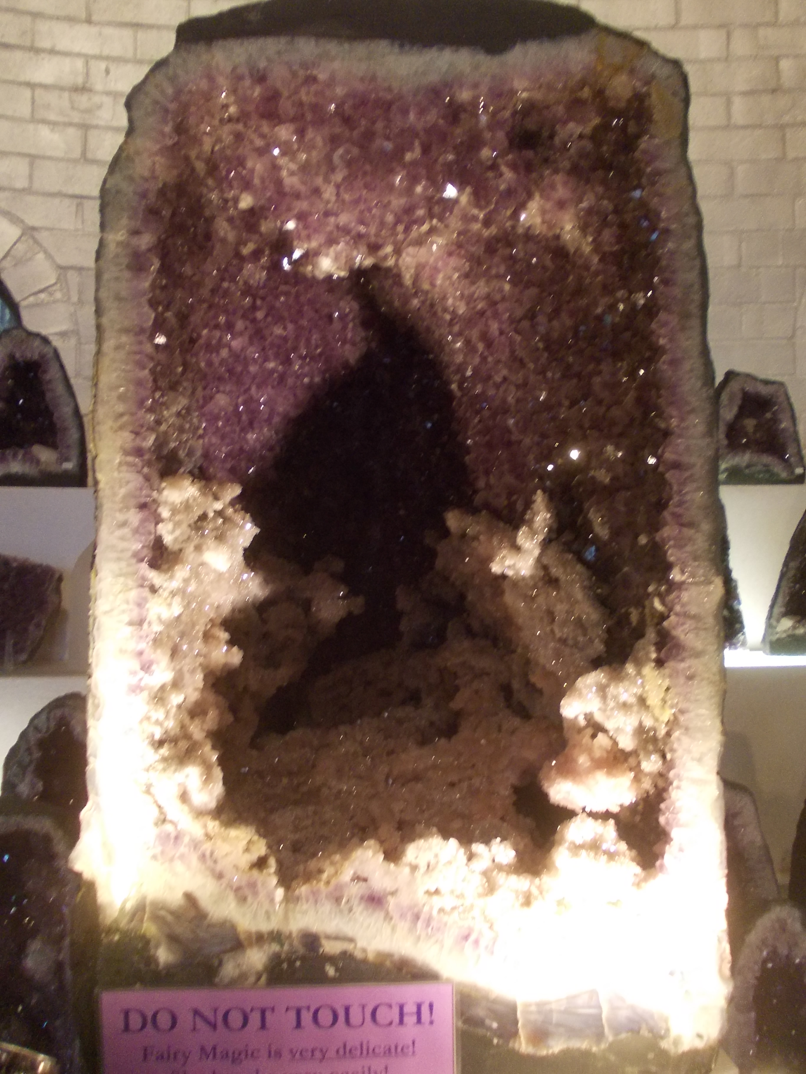 Then we walked over to the main building and looked at the huge collection of crystals they have here, a lot of which come from South America. I walked in the meticulously maintained gardens, and admired the statues and crystals they’d mixed in with the plants.