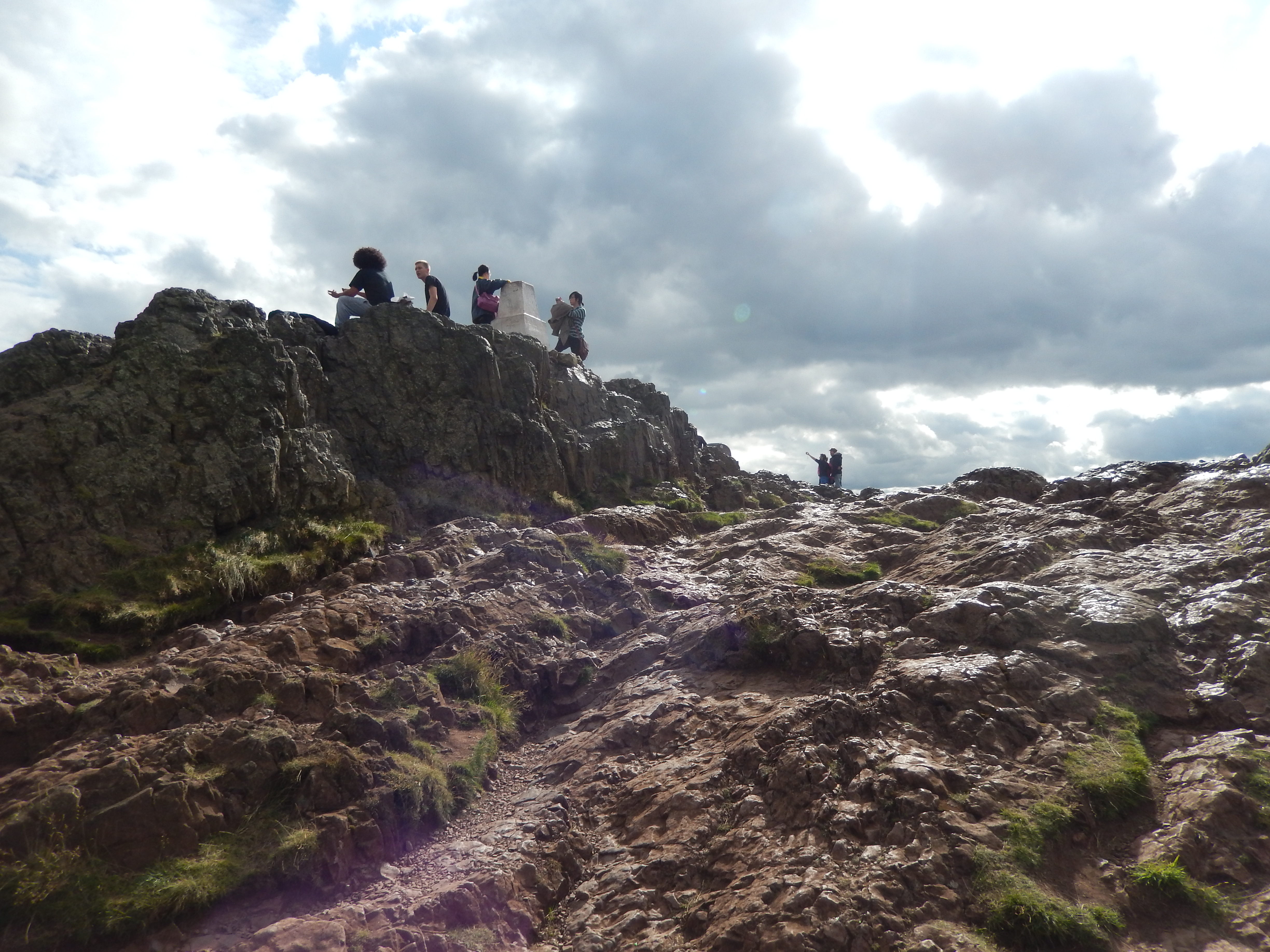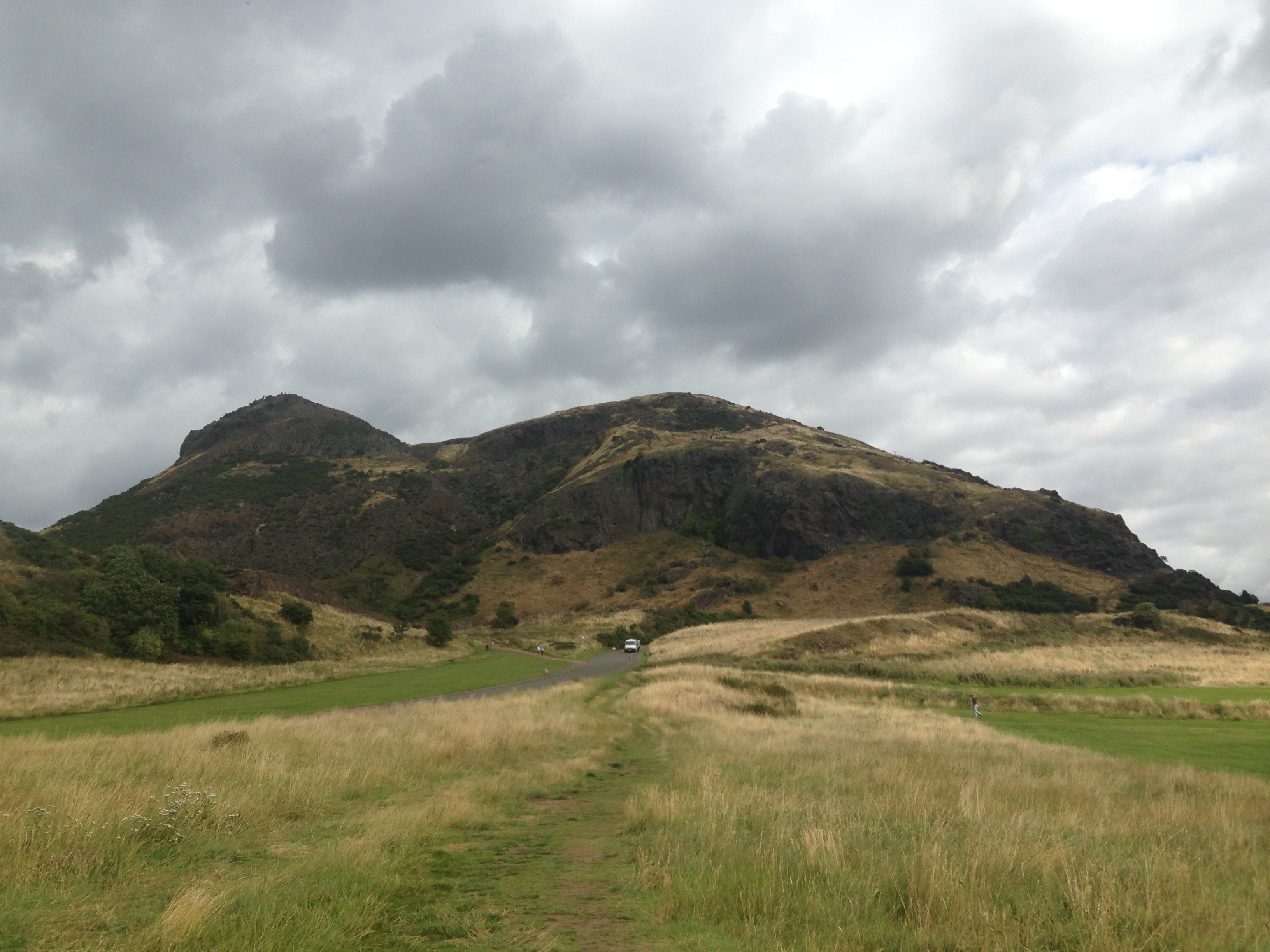 On my second to last day in Edinburgh, I climbed the volcanic hills that loom over the city. Arthur’s Seat, the craggy bit at the very top, is maybe named for King Arthur, or is maybe a corruption of Gaelic for “Archer’s Seat,” but since I’ve scrambled up it, I think it’s maybe a rough translation of the heavy breathing noises you make when you reach the top: “ah…dur…hee.” It’s steep, y’all.