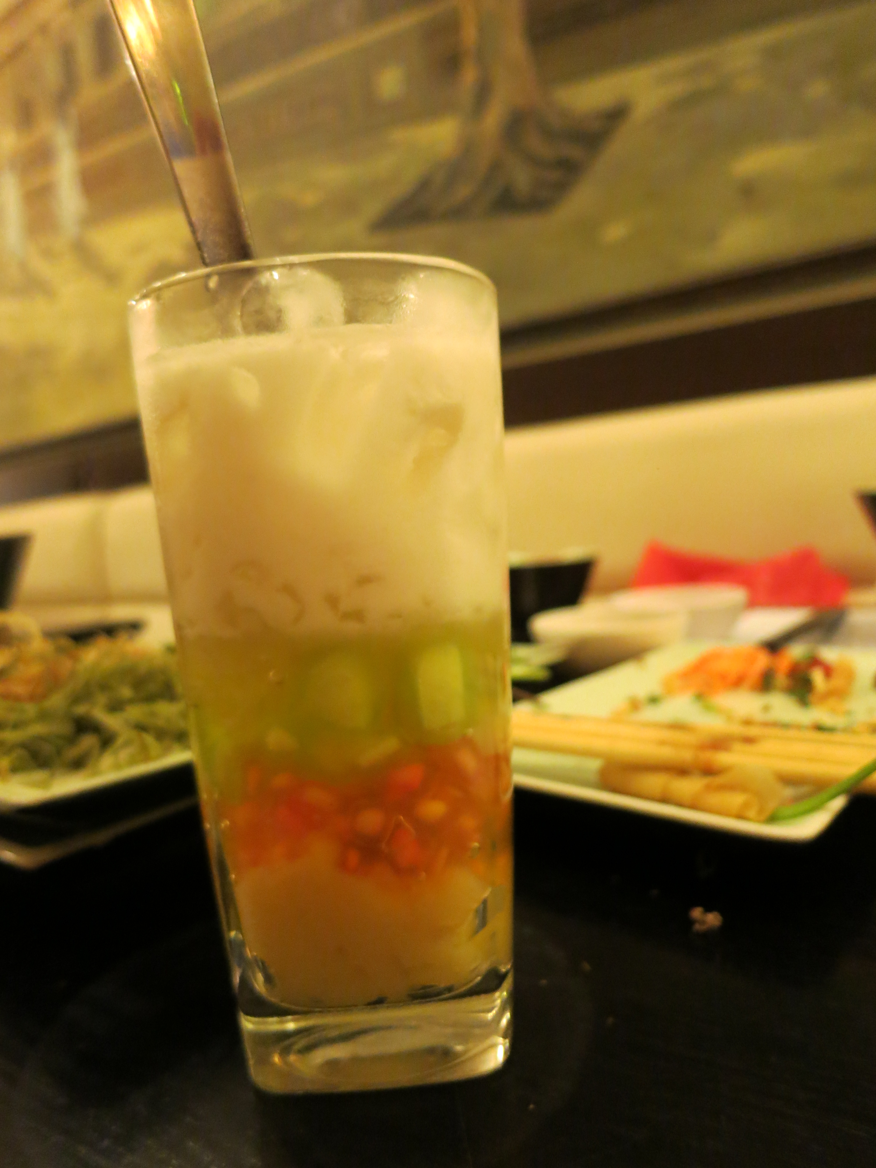 That night, I had dinner with a couple on the tour. Chrissy’s from Germany and Nicolas is from France. They were doing almost my exact itinerary, in reverse, so we shared a lot of tips with each other on what to do and where to go. We wandered around the food market, checking out the many different kinds of seafood on display, and purchasing palm juice for our walk. We had some pho and an elaborate, delicious dessert assembled by a woman who laughed when we came back for seconds because we liked it so much.