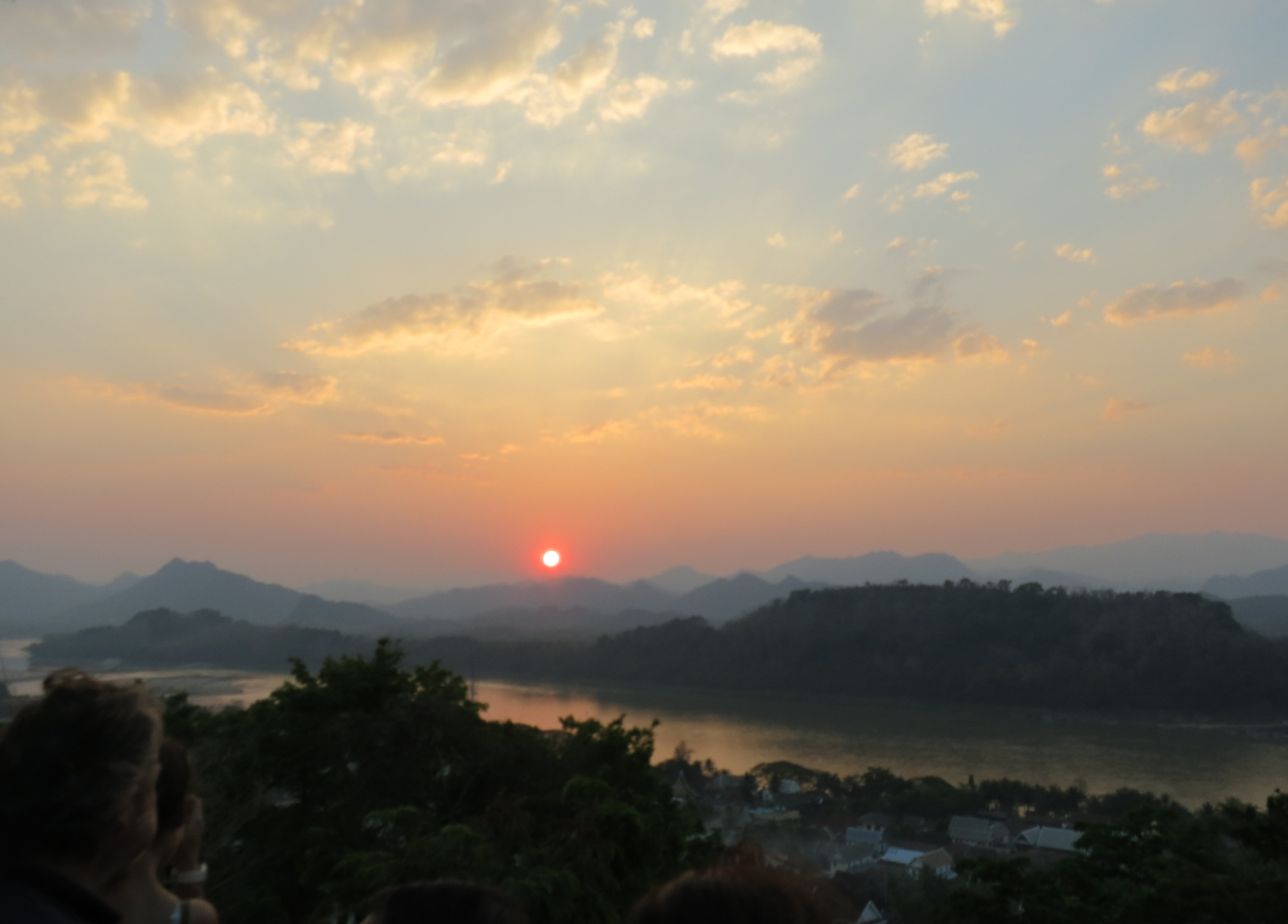 It wasn’t all sunshine and roses, of course. I almost didn’t make the boat, because the people I bought the ticket from refused to take me to the dock before 11:30—but the boat was meant to leave at 11:30. Finally, I started walking up to the main road to find my own tuk-tuk, and with an exasperated sigh the ticket seller led me to a tuk-tuk that got to the dock at 11:33, and I was literally the last person on board the boat. I’ve never been that person before, but here I was scooting down the aisle with my bags in tow, all eyes on me as I searched in vain for a seat. I ended up on a bench behind the engine room, which was big enough to stretch out in. But it was also incredibly hot back there, because we weren’t getting the same breezes they had up front, and the motor made a constant, deafening noise. On the second day, I got a seat near the front of the boat, so it was much quieter but we all basically sat on each other’s laps. The days were pretty cloudy, and we had a little rain on the first day. Getting up to go to the toilet was an exercise in acrobatics, and the toilet itself wasn’t exactly pleasant. I’d read that plenty of locals come by in their boats to sell food during the ride, but that didn’t happen once when I was there, and the bar had only a few packets of chips, so I was glad I’d bought one of the sandwiches from the many food vendors in both Huay Xai and Pakbeng.
