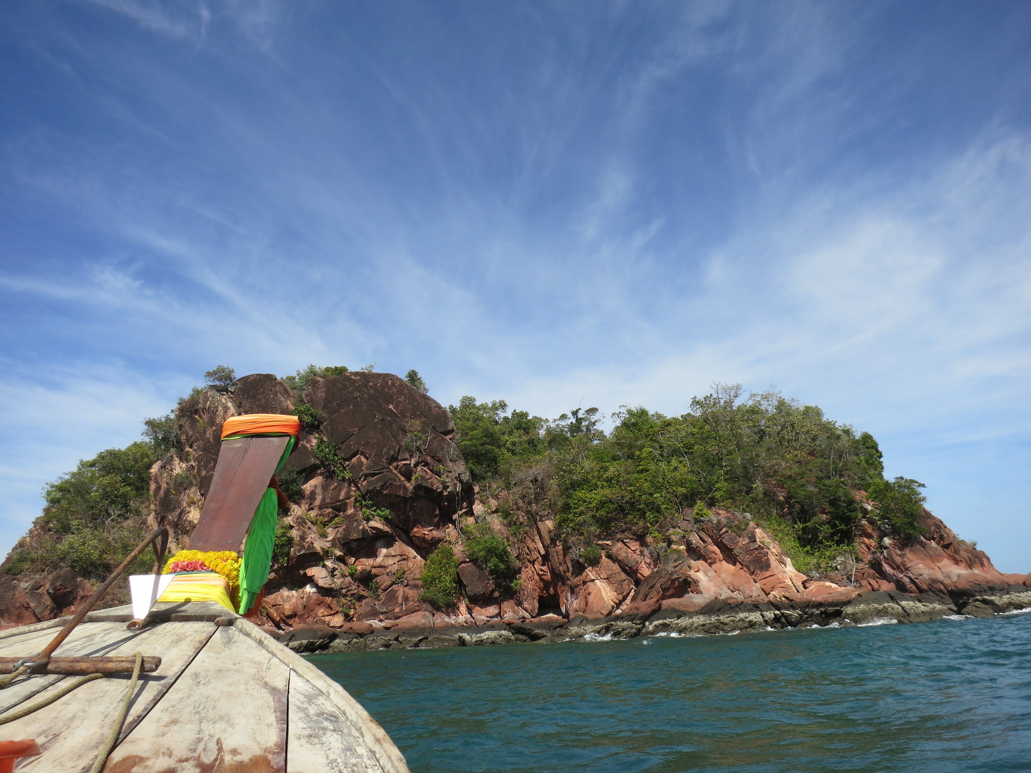 And yet, it’s still beautiful, worth visiting and admiring. I went on a tour to Hong Island, which included stops in the shallows of Deng Island and the bay of Paradise Island, and a detour past some ships guarding the princess’s summer residence. Probably about 40 of us piled on to a longtail boat with a driver and a guide (whose name I forget, unfortunately) and off we went into the bright sunshine.