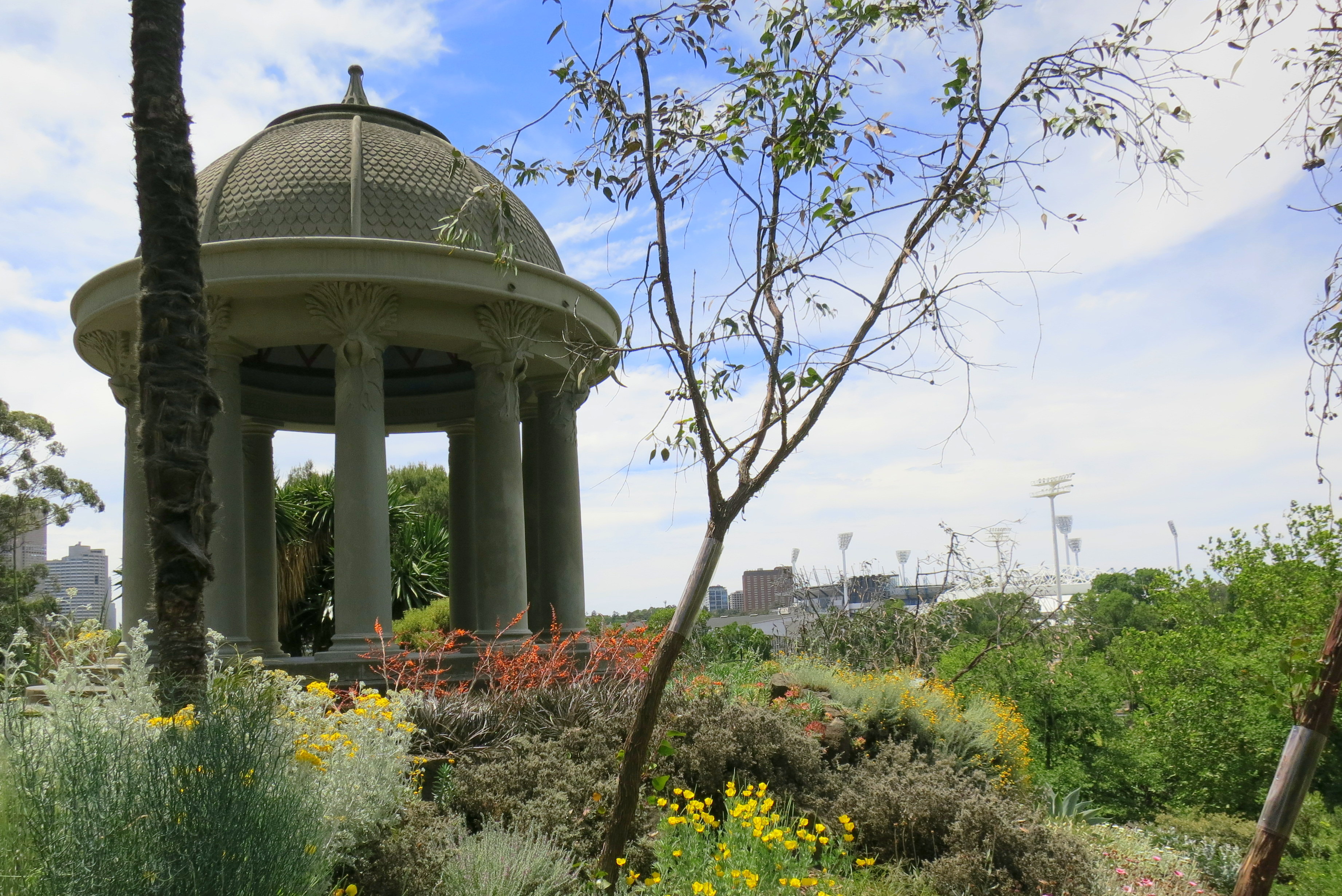 I visited the Royal Botanic Gardens, which, like their counterpart in Sydney, were sprawling and well-tended. Paths squiggled all over, and soon I found myself in the middle of who knows where, resting by some roses wilting in the heat, then following some birds down to a lake and watching kids play. There were several signs indicating the various water-saving measures the caretakers have instituted–reducing use by 60% between 1995 and 2005, which is mighty impressive. I saw black swans and their nearly grown cygnets, packs of schoolchildren on field trips, and a grove of ferns actually labeled “Fern Gully.”